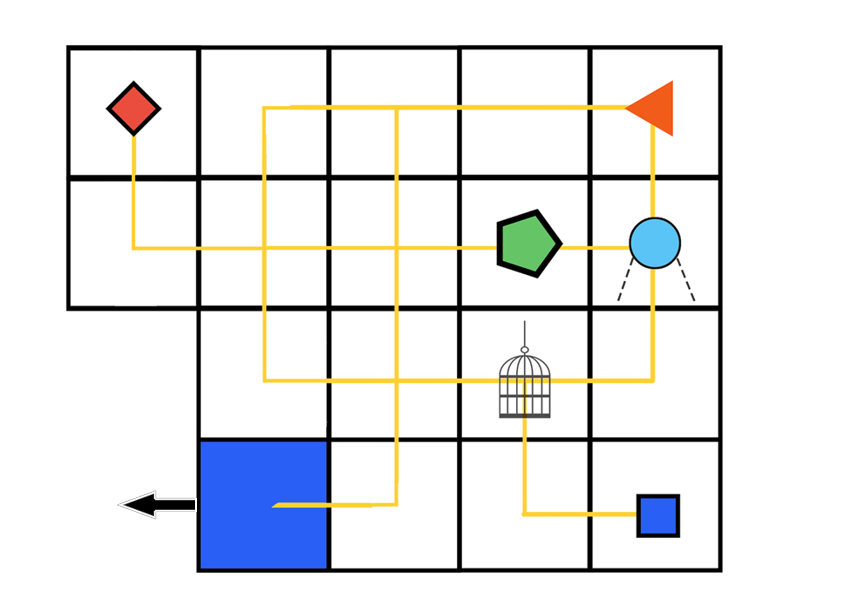 | Agent | ![]() | Moving enemy; one movement each round | Check if the player is one square in front. If so, chase the player in the following turns. |