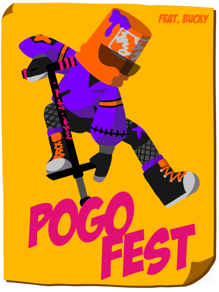 In the game, players take on the role of Bucky, a pogo enthusiast, navigating the map and collecting items to join the pogo festival in the town.